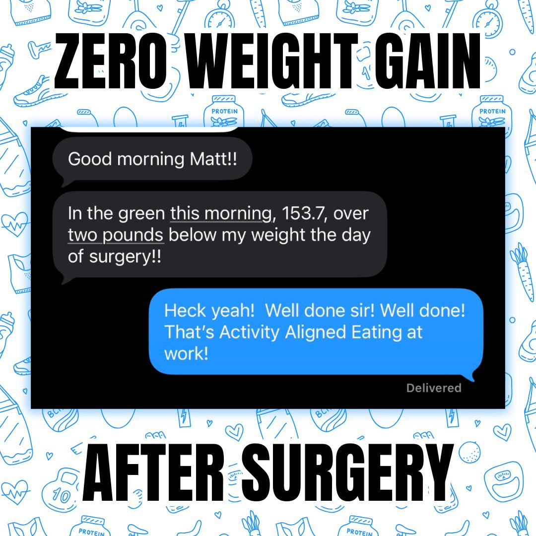 He knew what usually happens when you need surgery — you can't be active, the scale creeps up, and months of progress can vanish in weeks.